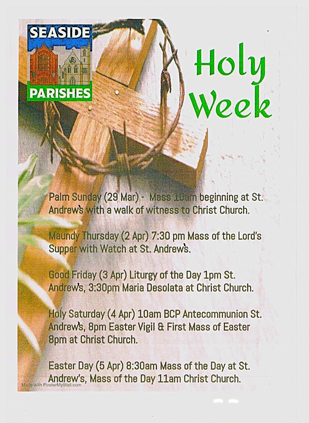 SUNDAY - PARISH MASS : 9.30am at St Andrew's, Seaside